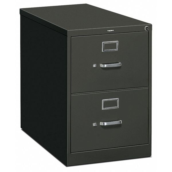 File Cabinet, Color Charcoal, Finish Charcoal, Material Steel, Number of Drawers 2, Overall Depth 26 1/2 in, Overall Height 29 in, Overall Width 18 1/4 in, Standards ANSI/BIFMA, ISTA, Assembly Fully Assembled, Includes Spring Loaded File Follower Block Keeps Files Upright and Neat, High Drawer Sides Add Strength and Serve As Front-To-Back Handrails, In.One Key In. Core Removable Locks