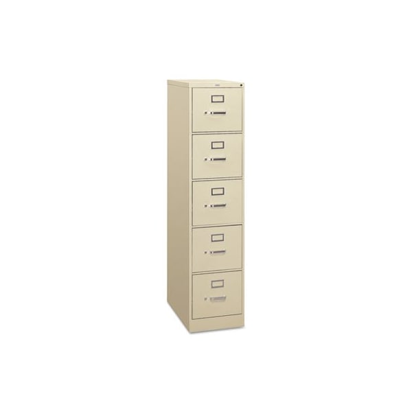 Commercial-grade files to meet your long-lasting needs. Tilt and slide follower block in each drawer keeps files upright and neat. High drawer sides add strength and serve as front-to-back hangrails. Thumb latch keeps drawers safely closed. Label holders for quick and easy identification of contents. HON inOne Keyin core removable locks. Steel ball bearing suspension. Accommodates Letter-Size Files. Drawer Quantity: 5; Drawer Configuration: File; Anti-Tip Mechanism Indicator: No; Color: Putty.