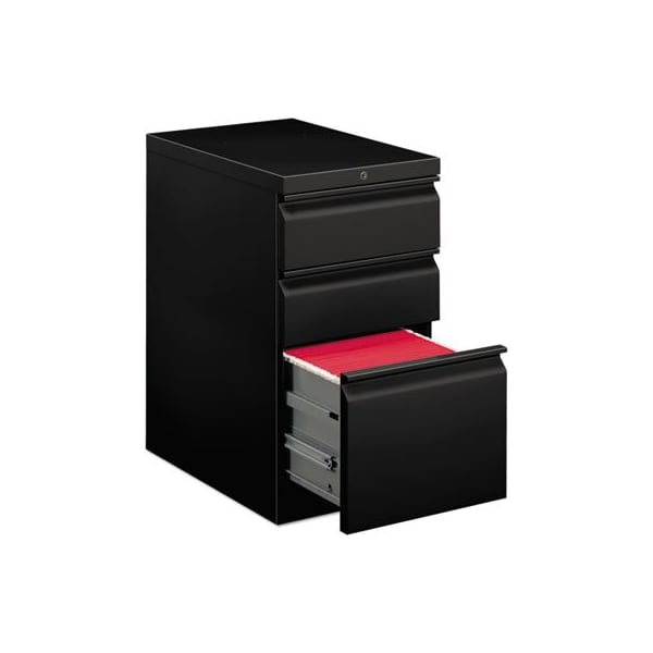 Heavy-duty pedestals with radius pulls to complement Brigade 800 Series Lateral Files. High sides for front-to-back letter size filing. Ball bearing suspensions on file drawer 90% extension and box drawer 75% extension. HON inOne Keyin interchangeable lock core. Counterweight inhibits tipping when opening more than one drawer. Fixed front casters; swivel back casters. Fits under 29 1/2in high worksurfaces. Box/Box/File FormatPencil tray insert in top box drawer. Drawer Quantity: 3; Drawer Configuration: Box/Box/File; Anti-Tip Mechanism Indicator: Yes; Anti-Tip Mechanism: Counterweight.