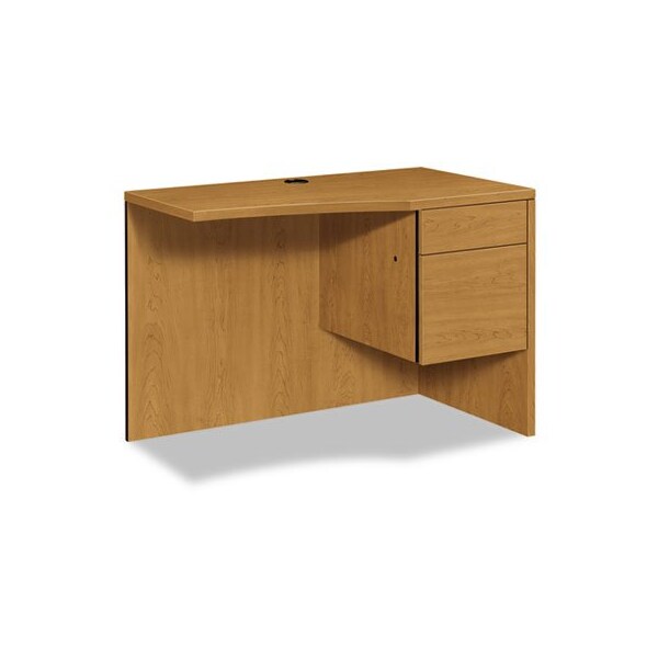 Hard-working, good-looking and built to survive a lifetime of overtime. Durable abrasion- and stain-resistant laminate. Grommet on worksurface for cable management. Full-height modesty panel for privacy. For use with Curved Corner Workstation only. Not freestanding. Return Orientation: Right; Color: Harvest; Color Family: Oak; Pedestal Count: 1.