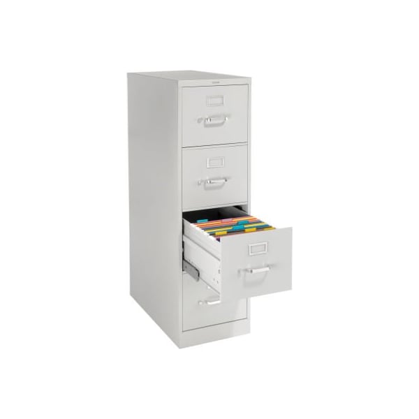 Hon premium vertical file 25"d unit - 4 drawer - letter finest quality, commercial-grade file storage available. Made with heavy-gauge steel. Drawers have full nylon roller suspension to help distribute weight of drawer contents evenly. Opens to provide full access to drawer. Triple-tied cradle with 10 nylon rollers for smooth, quiet drawer operation. Spring-loaded follower block in each drawer keeps files upright and towards the front for easy access. high drawer sides accommodate hanging file folders. Thumb latch keeps drawers securely closed. Drawers include contemporary drawer pulls, rubber bumper stops and label holder. Reinforced base for added stability. Scratch-resistant baked enamel finish over rust-inhibiting phosphate pre-treatment. Includes core cylinder lock with 2 keys. Meets or exceeds ansi/bifma standards. this product arrives to most customers in 2-3 business days.