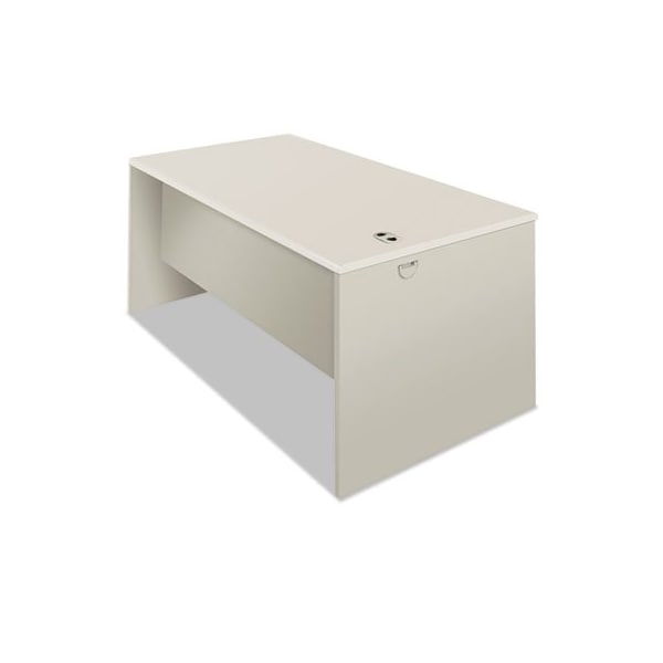 High-pressure laminate top is moisture-, scratch- and stain-resistant. Two work surface grommets help control cord and wires. Three-quarter height modesty panel for privacy. Combine with bridge, return, credenza shell or peninsula to create a U-workstation or L-workstation. Non-handed shell can be arranged for either left- or right-handed configurations. Series Name: HON 38000 Series; Worksurface/Base Color: Light Gray/Silver; Color Family: Gray; Worksurface Shape: Rectangular.