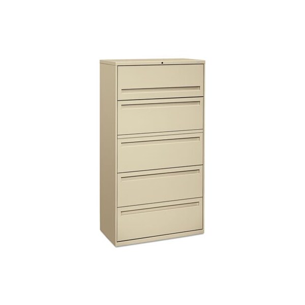 HON, 700 SERIES FIVE-DRAWER LATERAL FILE W/ROLL-OUT SHELF, 36W X 18D X 64 1/4H, PUTTY (Discontinued)