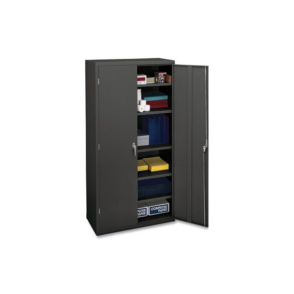 Industrial grade steel with on locking and one fixed, satin chrome double handles. HON inOne Keyin interchangeable lock core. Three-point locking system. Reinforced base with leveling glides. Tough construction provides extreme durability. Shelves adjust in 2in increments to accommodate different sized materials. 36w x 18.25d x 71.75h CabinetFive adjustable shelves. Color: Charcoal; Overall Width: 36in; Overall Depth: 18.13in; Overall Height: 71.75in.