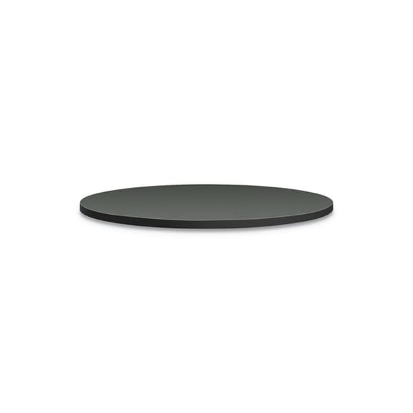The round work surface brings everyone closer to their work. Scratch-, spill- and stain-resistant laminate stands up to heavy use. Easily attach a base using pre-drilled holes. Thick work surface provides a sturdy foundation for work. Durable edge-band provides a smooth, comfortable edge. Top Color: Steel Mesh/Charcoal; Color Family: Gray; Top Shape: Round; Top Thickness: 1in.