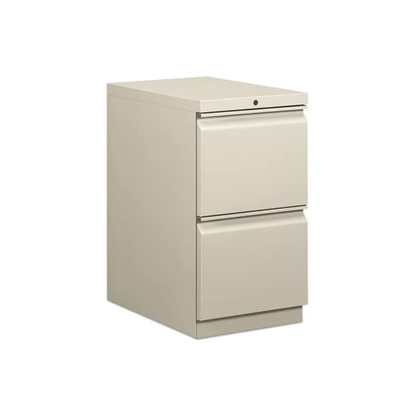 Heavy-duty pedestals with radius pulls to complement Brigade 800 Series Lateral Files. High sides for front-to-back letter size filing. Ball bearing suspensions on file drawer 90% extension and box drawer 75% extension. HON inOne Keyin interchangeable lock core. Counterweight inhibits tipping when opening more than one drawer. Fixed front casters; swivel back casters. Fits under 29 1/2in high worksurfaces. File/File Format. Drawer Quantity: 2; Drawer Configuration: File; Anti-Tip Mechanism Indicator: Yes; Anti-Tip Mechanism: Counterweight.
