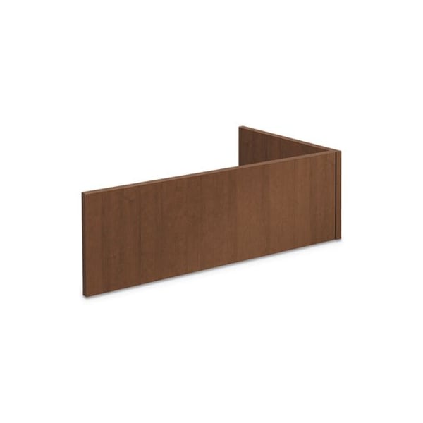 The stack-on reception panel extends the 72in wide reception station onto a return to create space for greeting visitors. Convenient transaction top allows visitors to stand while conducting business. Scratch-, spill- and stain-resistant laminate stands up to heavy use. Metal-to-metal fastening system for precise fit and unsurpassed durability. Fastens to the desk to provide privacy and space division. Color: Shaker Cherry; Color Family: Cherry; Overall Width: 42.25in; Depth Maximum: 24in.