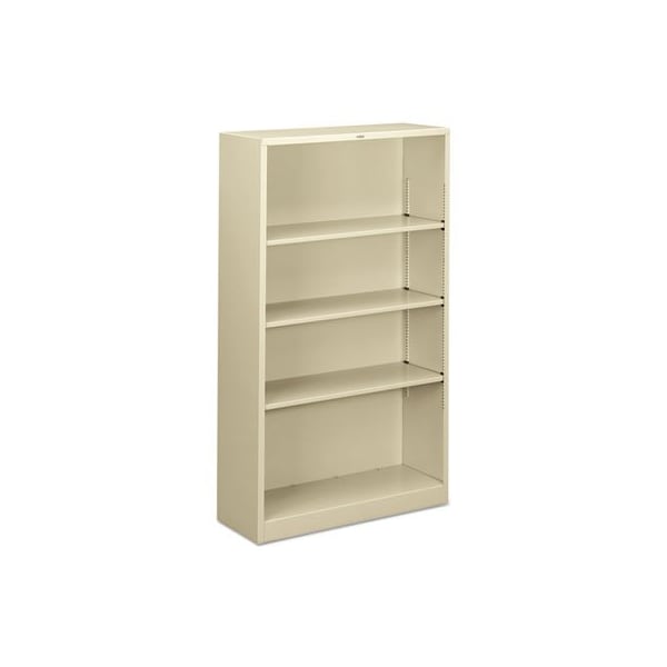 HON, Metal Bookcase, Four-Shelf, 34-1/2w X 12-5/8d X 59h, Putty