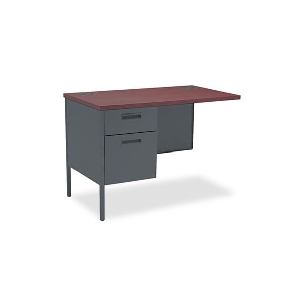 Durable finish on top helps resist damage. Full-suspension file drawer. Grommets for cable management. Modesty panel provides privacy. Flush drawer pulls. Not freestanding. Desk and Return sold and shipped separatelyORDER BOTH. Return Orientation: Left; Color: Mahogany/Charcoal; Color Family: Mahogany; Pedestal Count: 1.