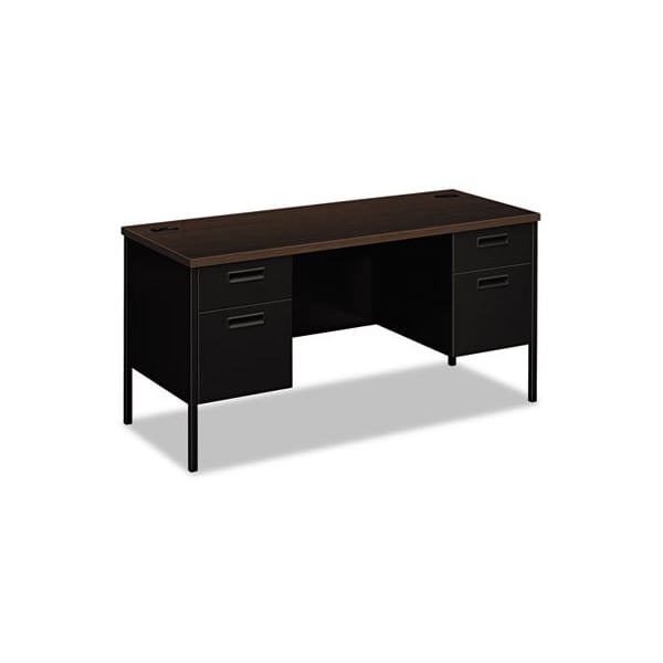 Classic, no-nonsense style for the practical, well-organized office. Durable laminate top helps resist damage. High-sided file drawers with full-extension triple-tied cradles and spring-loaded follower blocks; box drawers extend three-quarters on nylon rollers. Wire grommets offer convenient cable management. 3/4-height modesty panel provides privacy. Flush drawer pulls. Color: Mocha/ Black; Color Family: Brown; Pedestal Count: 2; Drawer Configuration: Left: Box/File; Right: Box/File.
