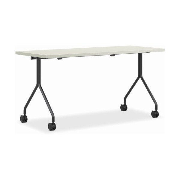 Selection of mobile and nesting tables to support meetings and collaborative work. Base flips the worksurface vertically to nest with other tables to save space. Table and base are bundled together. Scratch-, spill- and stain-resistant laminate stands up to heavy use. Rectangle worksurface gives up to four people space to collaborate. Order one SKU, get both. Top Color: Silver Mesh/Loft, Color Family: Gray, Base Color: Black, Top Shape: Rectangular.