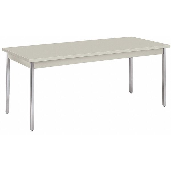 Utility Table, Surface Material Thermal Fused Laminate, Load Rating 1200 lb, Shape Rectangle, Width 72 in, Depth 30 in, Height 29 in, Tabletop Color Family Gray, Tabletop Color Light Gray, Frame Color Silver, Frame Material Steel, Leg Type Straight, Edge Color Light Gray, Edge Type Self-Edged, Top Thickness 1 3/25 in, Assembled/Unassembled Unassembled, Standards ANSI/BIFMA, ISTA