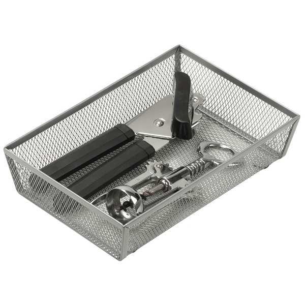 Cutlery Tray, Color Silver, Finish Powder Coated, Product Type Kitchen Drawer Organizer, Material Steel, Number of Compartments 1, Overall Height 2 in, Overall Length 9 in, Overall Width 6 in