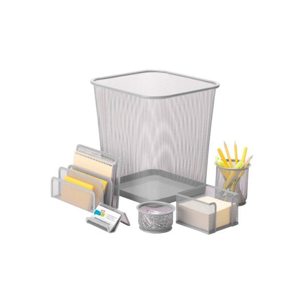 Honey-Can-Do 6-Piece Steel Mesh Desk Organization Set - Silver