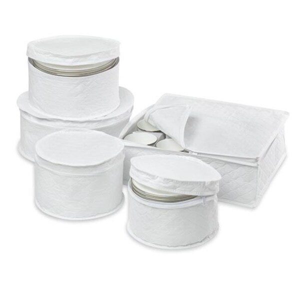 Honey-Can-Do has invested the time and resources to listen to purchasers of home storage and organization products. Consumers want stylish, high-quality home storage solutions at an affordable price. Our products answer their needs. Trend-driven designs and colors, coupled with exceptional quality, put us in a whole new category. Honey-Can-Do storage products inspire consumers to invest in the concept of organizing their homes. Honey-Can-Do SFT-01630 5-Piece Dinnerware Storage Set, White. Safely store fine china and special occasion dishes with this complete dinnerware storage set. The quilted cloth fabric includes zippered protection for saucer plates, desert plates, salad plates, dinner plates, and cups. The cup storage case features chipboard dividers for added protection. Makes a great housewarming or bridal gift.