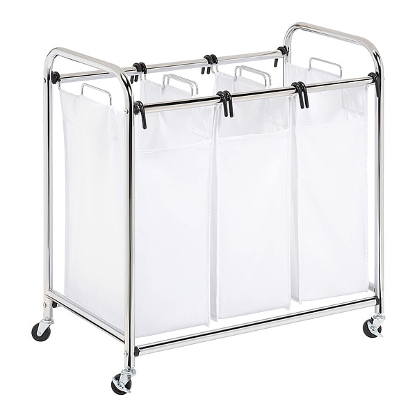 Hamper, Color White, Material Chrome Plated Steel/Poly-Cotton, Width 32 In., Length 31 In., Number of Compartments 3