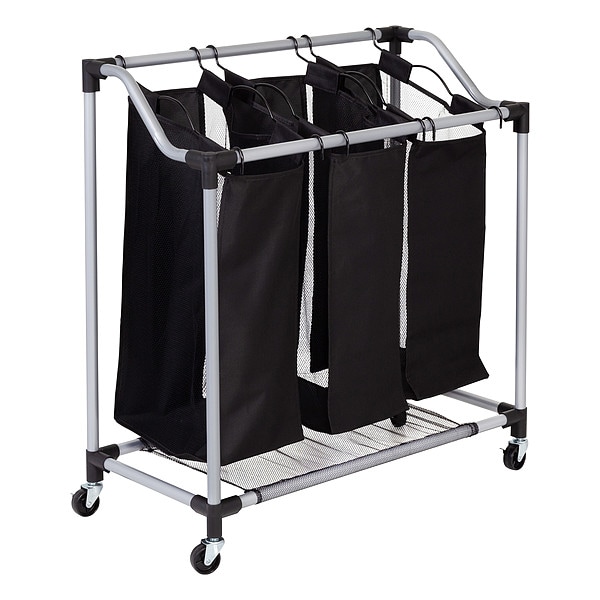 Hamper, Color Black, Material Steel/Mesh, Width 30 In., Length 15 In., Number of Compartments 3