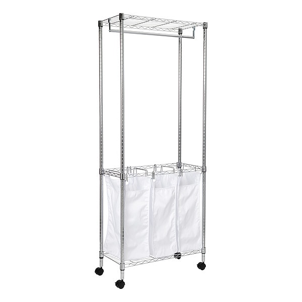Hamper, Color White, Material Chrome/Cotton, Width 30 In., Length 14 In., Number of Compartments 3
