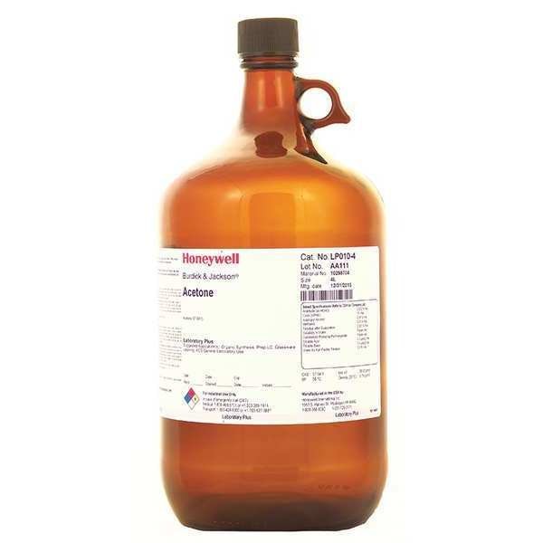 Acetone, Concentration 0.1 Percent, CAS Number 67-64-1, Molecular Weight 58.08, Chemical Formula CH3COCH3, Chemical Container Material Clear Glass, Chemical Container Type Bottle, Chemical Grade ACS, Chemical Container Size 4 L, Chemical Family Type Solvent, Calibration Certificate No, Shelf Life 18 mo, Shipping Restrictions Hazard Class 3, PG II, UN1090, Standards ACS, Package Quantity 4