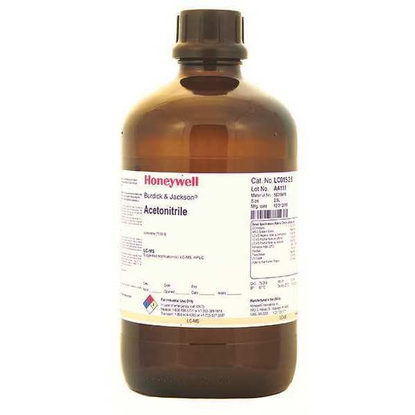 Acetonitrile, Concentration 100 Percent, CAS Number 75-05-8, Molecular Weight 41, Chemical Formula CH3CN, Chemical Container Material Clear Glass, Chemical Container Type Bottle, Chemical Grade HPLC, Chemical Container Size 2.5 L, Chemical Family Type Solvent, Shelf Life 18 mo, Shipping Restrictions Hazard Class 3, PG II, UN1648, Package Quantity 4