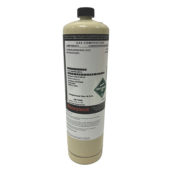 Calibration Gas, CGA Number CGA 600, Container Type Cylinder, Cylinder Capacity 34 L, Cylinder Diameter 3.13 in, Cylinder Height 10.64 in, For Use With GasAlert Series Sensors, Gas Mixture Carbon Monoxide 100 ppm, Gas Type Carbon Monoxide, Product Type Calibration Gas, Chemical Formula CO, Accuracy +/-5 Percent, Background Gas Nitrogen, Calibration Certificate Included, Cylinder Material Steel, Operating Pressure - Maximum 500 psi