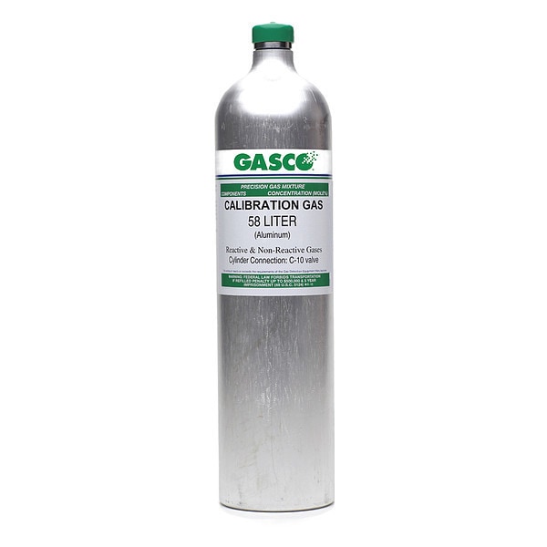 Calibration Gas, CGA Number CGA 600, Container Type Cylinder, Cylinder Capacity 58 L, Cylinder Diameter 3.5 in, Cylinder Height 8 in, For Use With Bump Test Stations, Gas Detection Instruments, Gas Mixture Hydrogen Cyanide 10 ppm, Gas Type Hydrogen Cyanide, Product Type Calibration Gas, Chemical Formula HCN, CAS Number 74-90-8, 7727-37-9, Accuracy +/-10 Percent, Background Gas Nitrogen, Calibration Certificate NIST, Cylinder Material Aluminum, Outlet Connection Type C-10