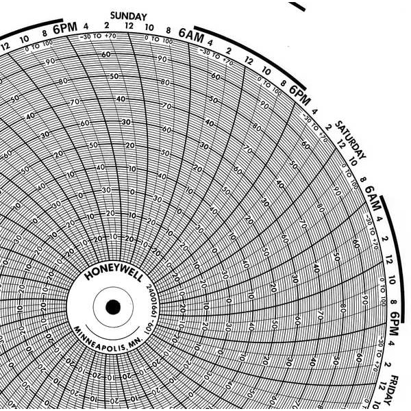 Chart, 10.313 In, 0 to 100, 7 Day, PK100