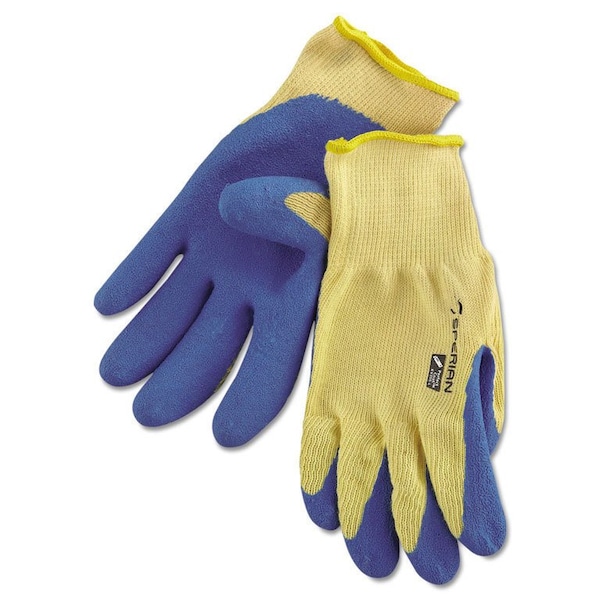 Honeywell KV200-S Tuff-Coat Blue/Yellow Small Kevlar Gloves, Latex Palm and Fingertips Coating, Seamless Knit, 4.75'''' Height, 6.75'''' Width, 1'''' Length.Cut resistant Material and High-Quality Elastic.Excellent comfort and dexterity to wear and grip--- flexible operation, Not too hard, No sliding. The special high elastic latex is blended to make the gloves fit your hand so well.Easy to sanitize and keep clean. It is hand and machine washable and can be sanitized as kitchen dishwashing towel.