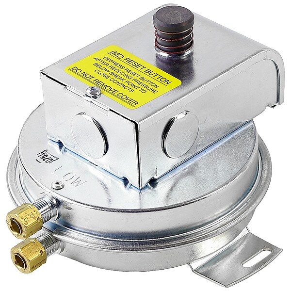 Air Pressure Switch, Contact Form SPDT, Electrical Connection Type Screw Terminals, Electrical Rating 278 VA @ 24V AC, 300 VA @ 120 to 277V AC, Housing Material Metal, Input Voltage 120V AC, 24V AC, 277V AC, Maximum Differential Pressure Setting 13.85 in wc, Maximum Operating Temperature 190 Degrees F, Maximum Pressure Rating 0.5 psi, Maximum Pressure Setting 12 in wc, Minimum Operating Temperature -40 Degrees F, Minimum Pressure Setting 0.3 in wc, Mounting Hole Center to Center Distance 5 in