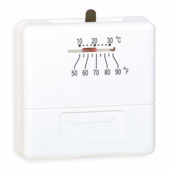 Low Voltage Thermostat, Terminal Designations R, W, System Switching No, Fan Switching No, Automatic Changeover No, Dual Transformer Compatible No, Power Method Hardwired, Voltage 18 to 30V AC, 750mV Compatible No, Mounting Horizontal, Height 3 in, Width 3 in, Depth 1 1/4 in, Color White, Control Range 50 Degrees to 90 Degrees F, Features Mercury Free, For Use With Gas, Oil, Forced Air, Includes Dealer Logo Pocket