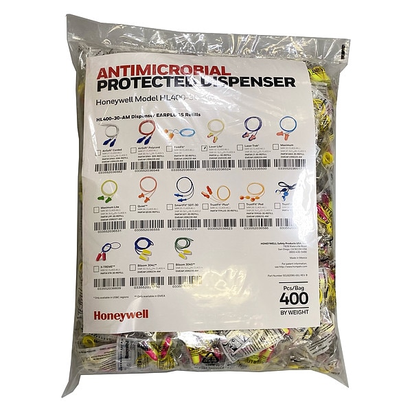 Earplug Dispenser Refill, Product Type Dispenser Refill, Noise Reduction Rating 32 dB, Insertion Method Push-In, Reusability Reusable, Earplug Shape Contoured-T, Earplug Pair Pack Type Bag, Earplug Size Universal, Pairs per Package 400, Overall Height 16 3/4 in, Overall Width 10 in, Earplug Color Red/Yellow, Overall Depth 10 in, Metal Detectable No, Refill Type Bulk Refill, Cord Options Corded, Earplug Material Foam, Standards ANSI S3.19-1974, OSHA CFR 1910.95