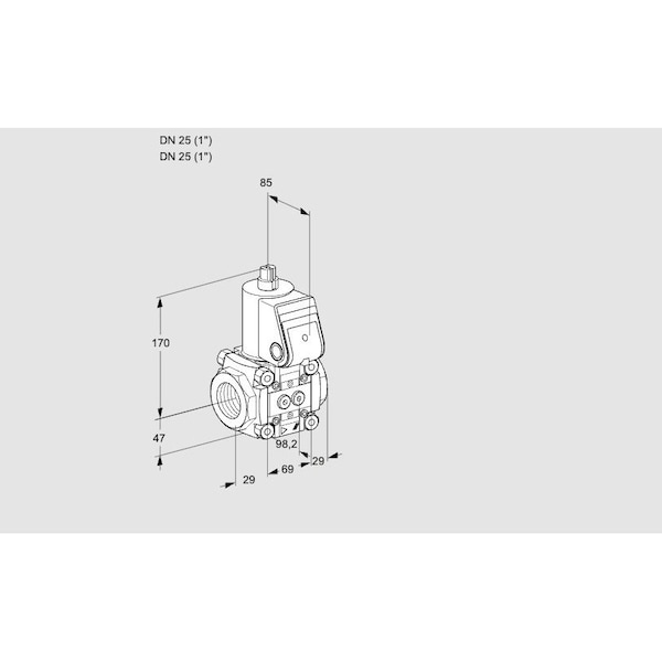 The HONEYWELL KROMSCHRODER VAS2T25N/NW is a Class A solenoid valve intended for use in applications requiring the shut-off of gas and air. This valve remains closed when de-energized and rated for operation up to a maximum pressure of 500 mbar. It features a pilot lamp, flow adjustment capability, and an IP65-rated enclosure. The unit holds EU certification as well as FM and CSA approvals, with may be used in systems where SIL 3 or PL e compliance is required, subject to proper system integration.