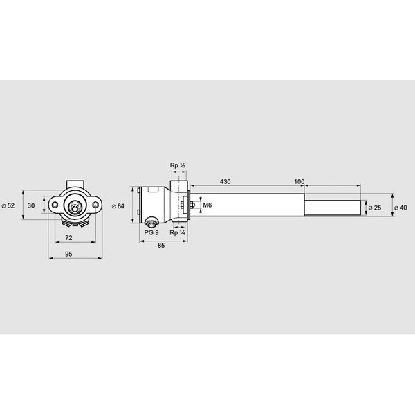- Burner tube length options: from 150/100 mm up to 1000/100 mm