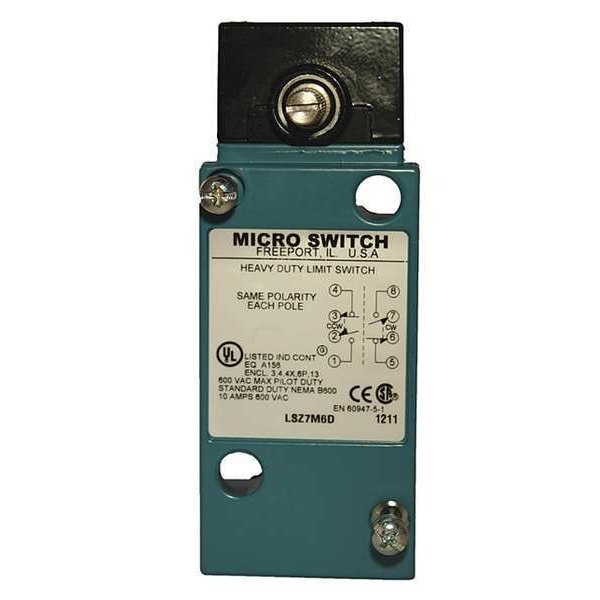 Limit Switch Head, Actuator Style Rotary Lever, Actuator Location Side, Contact Form 2NO/ 2NC, Amps 10, Voltage Rating 600VAC/250VDC, Travel Pretravel 18 Degrees Max., Overtravel 57 Degrees Min, Differential Travel 10 Degrees Max., Movement CW and CCW, Operating Force Not Applicable, Operating Temp. 30 Degrees to 250 Degrees F, NEMA Rating 1, 3, 4, 4X, 6, 6P, IP Rating Not Rated, Standards RoHS, For Use With Mfr. No. LSM6D