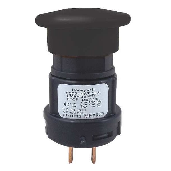 Emergency Stop Push Button, 22 mm, Maintained Push / Maintained Pull Action, 25mm Mushroom Head Type of Operator, Head Material Acetyl, Contact Form 1NO/1NC, Bezel Glass Filled Nylon, Color Black, Contact Rating 10A @ 24V DC, 20A @ 12 to 14V DC, Number of Operators 1, IP Rating IP67, Legend Not Applicable, Terminal Connection Screw Clamp, Material Plastic