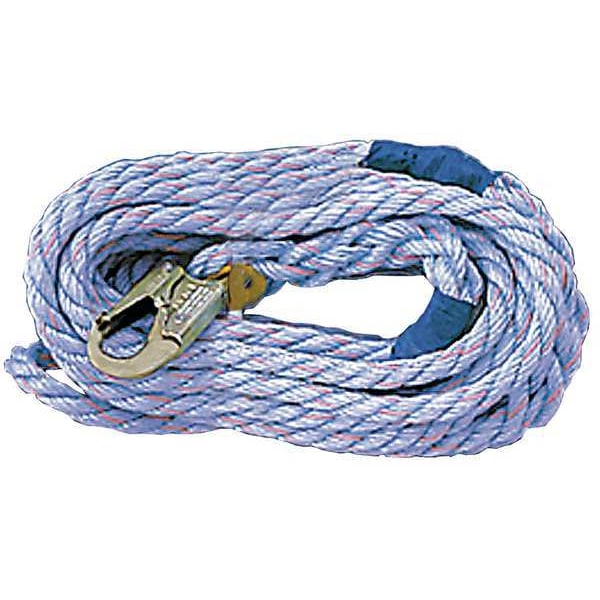 Vertical Lifeline, Color Blue, Gray, Weight Capacity 310 lb, Standards OSHA, ANSI, CSA, Rope Lifeline Component Rope Lifeline, For Use With Rope Grabs, Hardware Material Steel, Workers per System 1, Tensile Strength 5,000 lb, Lifeline Length 75 ft, Lifeline Material Polyester, Polypropylene, Includes Integral Snap Hook, Anchorage End Connection Snap Hook, Rope Diameter 5/8 in, Rope End Style Snap Hook