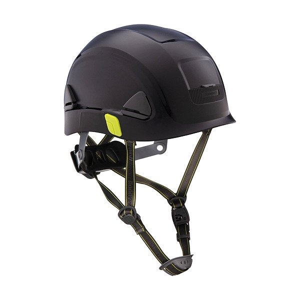 Climbing Helmet, ANSI Classification Type 1, Class E, Type 2, Class E, Head Protection Style Climbing, Head Protection Suspension Type Ratchet (8-Point), Head Protection Color Black, Head Protection Graphics No Graphics, Head Protection Material HDPE, Accessory Mounting Options Side-Slots