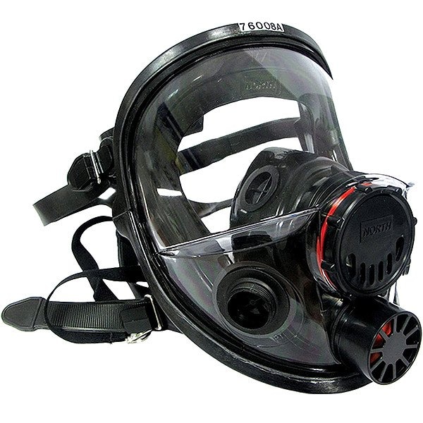 The HONEYWELL NORTH - Z760008A is a Full Face Respirator, designed to provide respiratory protection in various industrial settings such as automotive, chemical manufacturing, painting, petrochemical, pharmaceutical utilities and woodworking. The respirator's facepiece material is made from silicone and it features a chin support for added comfort during use. It comes with a hook-and-loop (5-point) full-face suspension which allows for easy adjustment.
