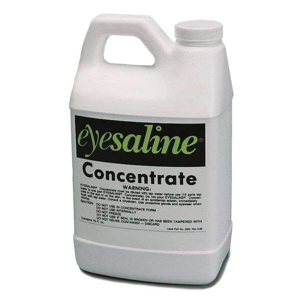 This 70-oz. container of Honeywell Eyesaline lets you mix eye wash solution that's designed for proper eye irrigation without irritation. This isotonic saline solution concentrate is buffered to the same pH balance (7.4) as the human eye. Just mix 10 parts tap water to one part concentrate to make up to 5-gal. of solution.