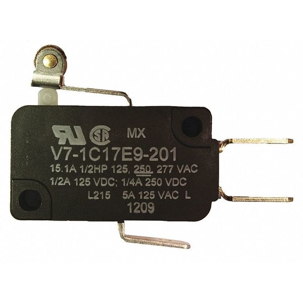 Snap Action Switch - V7 Series, SPDT, Roller Lever, 15A, Quick Connect