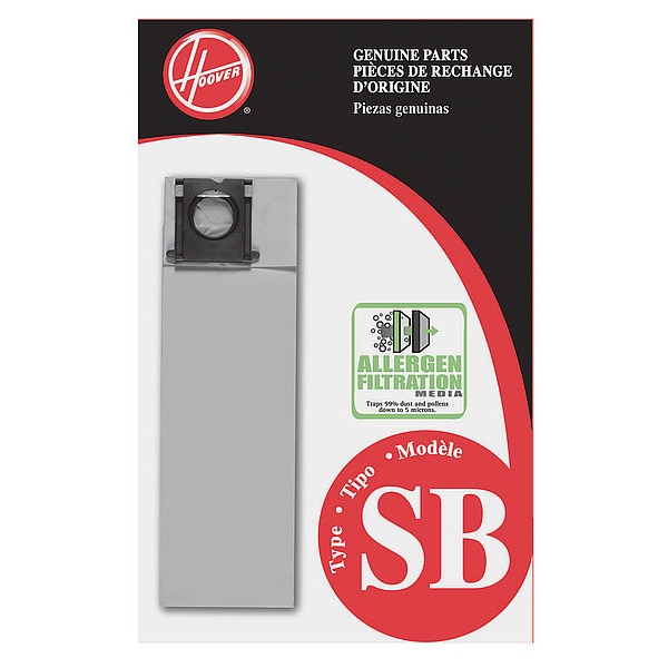 Vacuum Bag, For Vacuum Type Upright Vacuum, Fits Vacuum Brand Hoover, Fits Vacuum Models CH50100, CH50102, Bag Filtration Type Standard, Filter Efficiency 99 Percent at 0.5 microns, Bag Material Paper, Ply Count 2-Ply, Bag Pickup Type Dry, Bag Reusability Disposable, Height 5 1/2 in, Length 11 in, Width/Diameter 4 1/2 in, Package Quantity 10