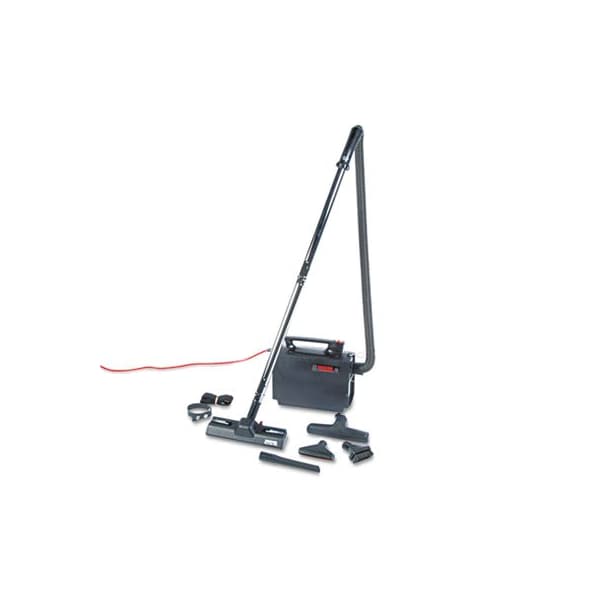 This compact, efficient and easy to transport vacuum cleaner with a 2.2 peak HP motor weighs only 8.3 lb.--great for workers on the move or cleaning multiple floors. Plus, it doubles as a blower. The reusable 3-layer commercial cloth bag with paper bag option saves you time and money. The unique design easily fits on stair tread for cleaning convenience. Equipped with an 8-piece tool set--crevice tool, wall/floor brush, dusting brush, furniture nozzle, rug/floor nozzle, two chrome wands, storage strap and shoulder strap. Current: 7 A; Power: 2.2 hp; Colors: Black; Cleaning Path: 10in.