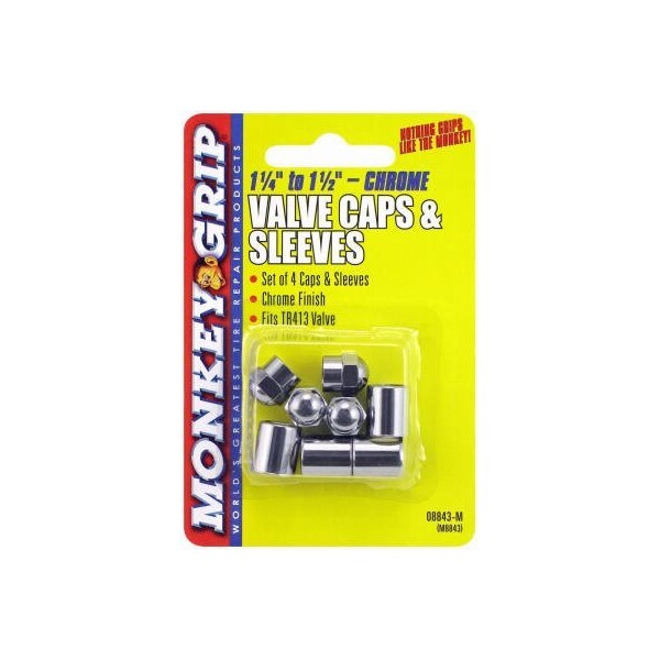 8 Piece, Chrome, Cap Sleeve, Includes 4 Hex Valve Caps 4 Sleeves, Fits TR413 TR418 Valves