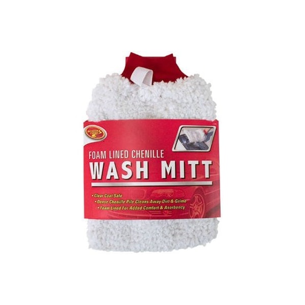 Deluxe Chenille Wash Mitt With Inner Lining Pad, Soft Synthetic Pile That Prevents Scratching