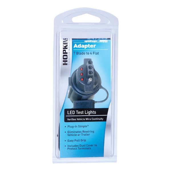 Quickly convert your 7 blade vehicle side connector to a 4 flat trailer end connector. This adapter has a patented weatherproof design. Integrated LED lights lets you know if know when wiring is functioning properly. Also, includes dust cover for 4 Flat to help prevent corrosion.