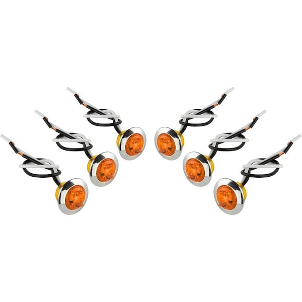 The 6 pack amber 3/4 in. round clearance/side marker with rubber grommet and chrome bezel is designed to conform to applicable US FMVSS108 and Canadian CMVSS safety standards for clearance lighting. Its small shape is compared to the size of a penny, hence the nickname penny light. The clearance marker is PC rated, meaning that it can be seen 90-degrees off from its center, helping to make a trailer more visible from all angles. The 12 V marker light contains 1-high-output LED that offers exceptional brightness and performance. The life of a LED light far exceeds traditional incandescent lights and draws significantly less power. The side marker light and can also be used as an ID light (3-required), utility, step well, or cabinet lights. The penny light comes with a rubber grommet and chrome decorative bezel. Easily installs into any 3/4 in. opening.