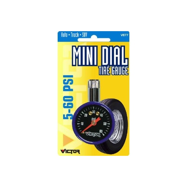 5 60 PSI, Mini Dial Tire Gauge, High Visibility, Compact Design, For Auto, SUV, RV, Light Trucks, Assorted Colors, Purple, Orange, Lime Green