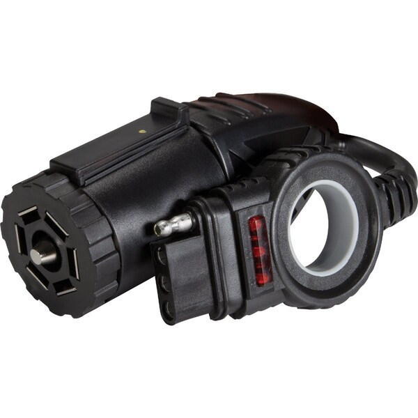 Quickly convert your 7-Blade vehicle side connector to a 4-Flat trailer end connector. The struggle for disconnecting 4-Flats is over. A finger loop provides advanced ergonomics and makes connecting and disconnecting a breeze. Integrated LED lights lets you know if know when wiring is functioning properly. This Endurance adapter includes a dust cover for long lasting performance.
