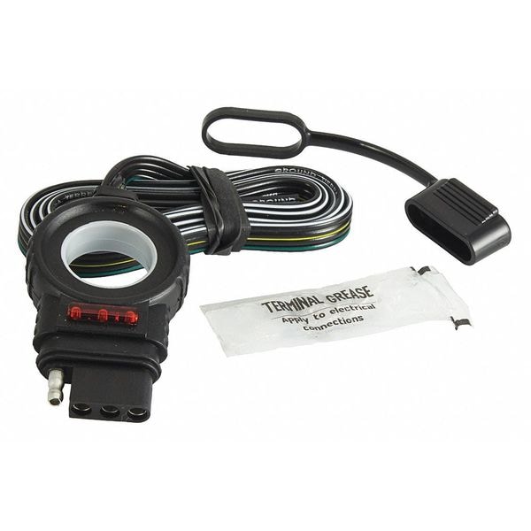 Flat Electric Connector, Product Type Flat Electric Connector, Connection Type 4-Way, Contact Material Tin Plated Steel, For Use With Boat Trailers, Jet-Skis, Small Camper Trailers, Snowmobiles, Utility Trailers, Insulation Material PVC, Wire Gauge 16 ga, Wire Length 4 ft, Features Ergonomic Grip, LED Test Verifies Wiring Continuity, Printed Wire Functions for Easy Reference, Includes Dust Cover, Grease, Standards SAE J-1239