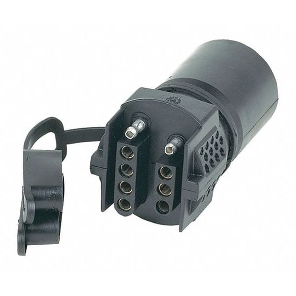 Wiring Adapter, Product Type Wiring Adapter, For Use With Vehicle and Trailer, Trailer Connection 4-Way Flat, 5-Way Flat, Vehicle Connection 7-Way Blade, Material Plastic, Color Black, Height 6 7/8 in, Overall Width 2 7/8 in, Overall Length 1 7/8 in, Standards SAE J1239, J2863, Features Impact and Corrosion Resistant, Multi-Tow Provides Multiple Towing Options from One Connector, Plug-In Adapter, Includes Dust Cover, Finish Unfinished, Working Torque 1